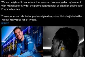 “我们非常高兴地宣布,俱乐部已与曼城就巴西门将埃德森的永久转会达成协议。这位经验丰富的门将已与我们签署了一份3+1合同。”