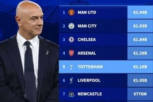 体育资讯9月5日讯 德转统计,自列维2001年加入热刺后,英格兰同期只有4支俱乐部在转会市场净投入比热刺更多。